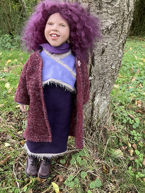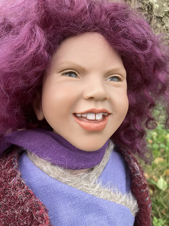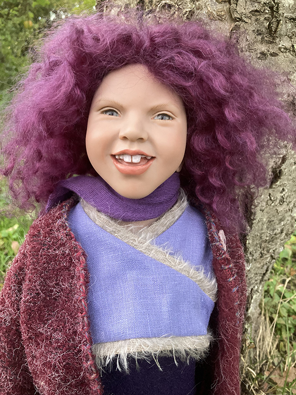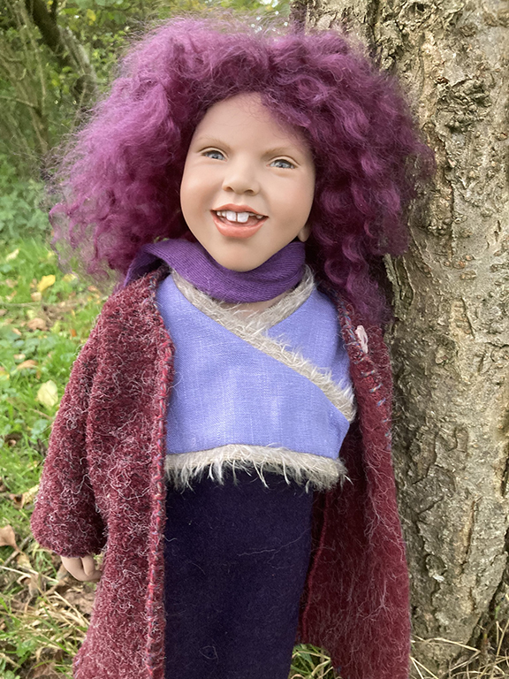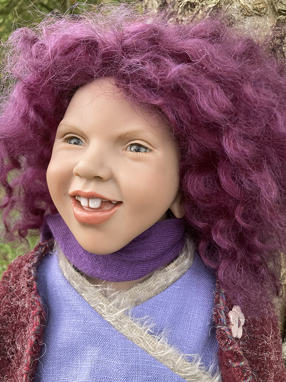 She is 50cm tall and limited to 250 pieces and has grey/blue eyes with a fabulous purple curly mohair wig.