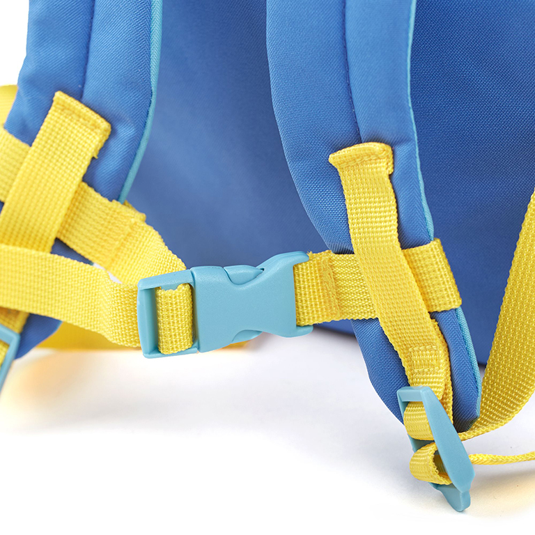 The cute blue bear backpack watches the little ones’ backs wherever they go and makes use of its paws to keep drinking bottles safe. One of these paws is stitched on, the other one can be opened by velcro and shows a name label on the inside. The main compartment has an easy-care sigikid print lining and features another small zipped pocket at the back. Adjustable straps and padding at back and shoulder straps add to your child’s comfort. The side pockets for drinking bottles and the smaller front pocket are made of a foam material that has insulating properties.