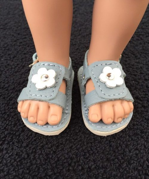 Fantastic light blue real leather open toe sandals modified to fit Sasha dolls.