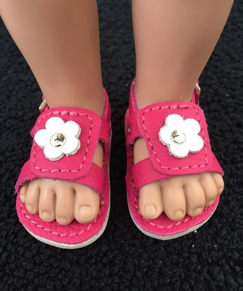 Fantastic fuchsia real leather open toe sandals modified to fit Sasha dolls.