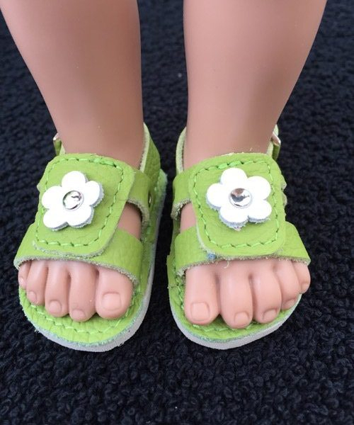 Fantastic light green real leather open toe sandals modified to fit Sasha dolls.