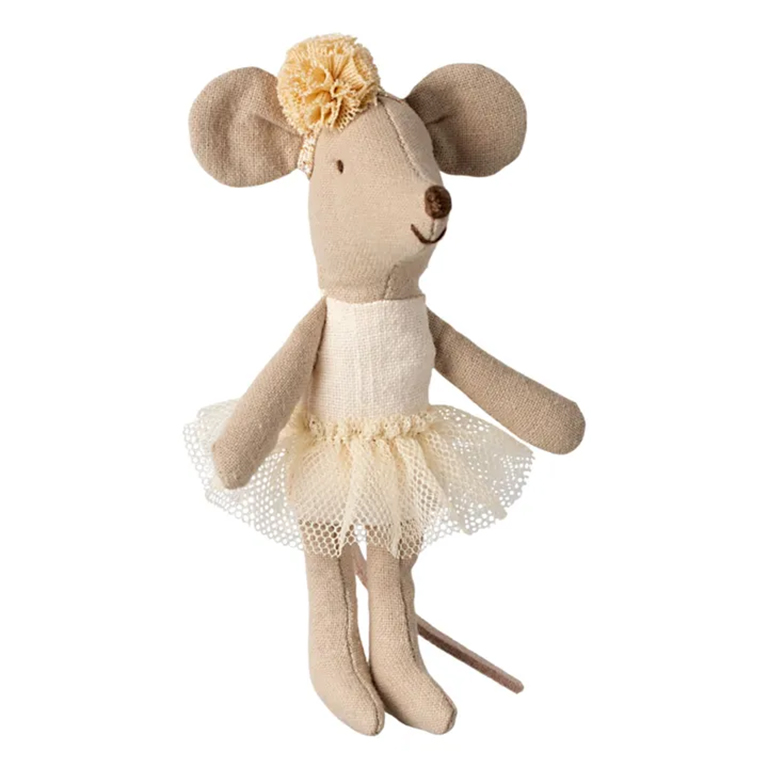 Adorable Little Sister Mouse in her ballerina outfit in off-white.