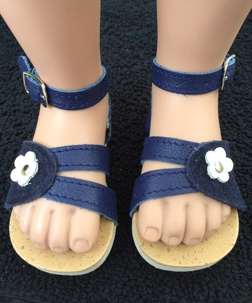 Fantastic navy blue real leather open toe sandals to fit 55cm Zwergnase Junior Dolls.