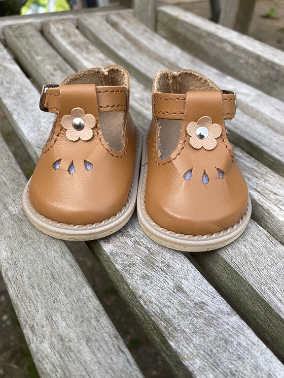 Fantastic light brown real leather T-bar shoes to fit 50cm Zwergnase Junior Dolls, also fit Gotz Hannah/Happy Kidz.