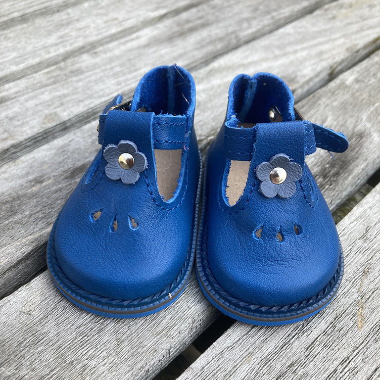 Fantastic royal blue real leather T-bar shoes to fit 50cm Zwergnase Junior Dolls, also fit Gotz Hannah/Happy Kidz.