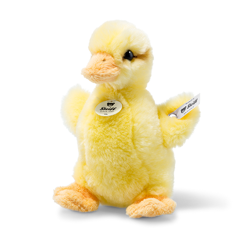 Here is Steiff’s Pilla duckling made of wonderful yellow cuddly soft woven fur and stuffed with a bean bag which makes her wonderfully tactile. Pilla duckling makes a perfect gift for spring,