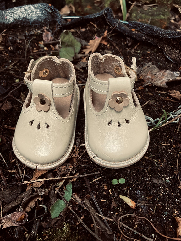 Fantastic cream real leather T-bar shoes to fit 50cm Zwergnase Junior Dolls. These will also fit Gotz Hannah/Happy Kidz.