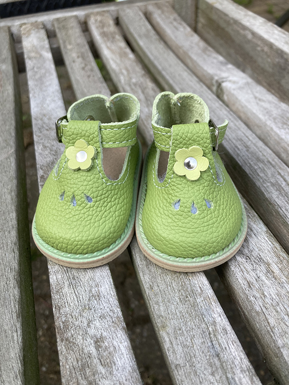 Fantastic green real leather T-bar shoes to fit 50cm Zwergnase Junior Dolls, also fit Gotz Hannah/Happy Kidz.
