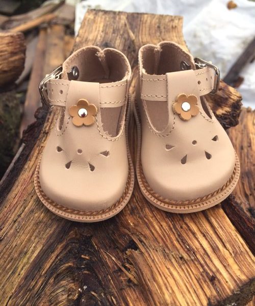 Fantastic light brown real leather T-bar shoes to fit 55cm Zwergnase Junior Dolls.