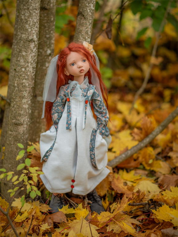 Coco 2 has a beautiful hand painted face, a human hair wig and German glass hand-blown eyes. She has a full vinyl body with 10 joints – so she is fully moveable. She wears real leather shoes, and a beautifully detailed high quality outfit.