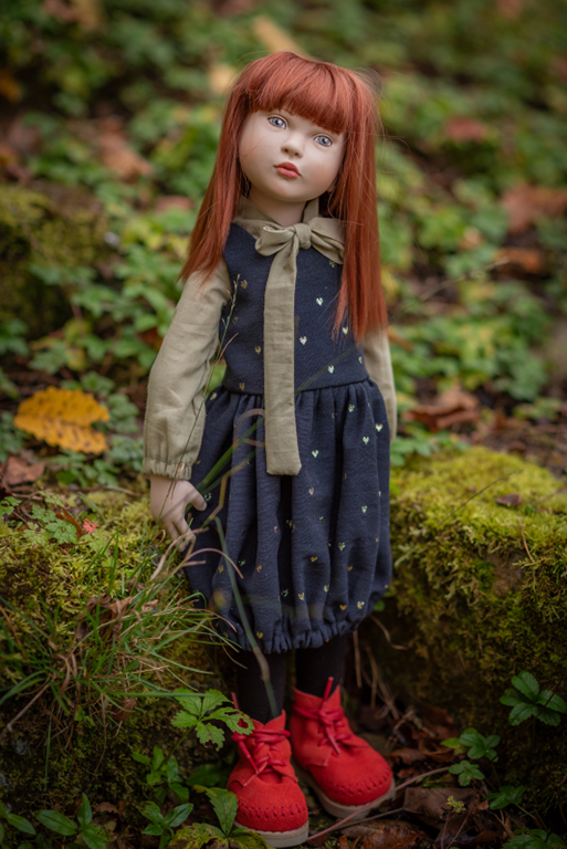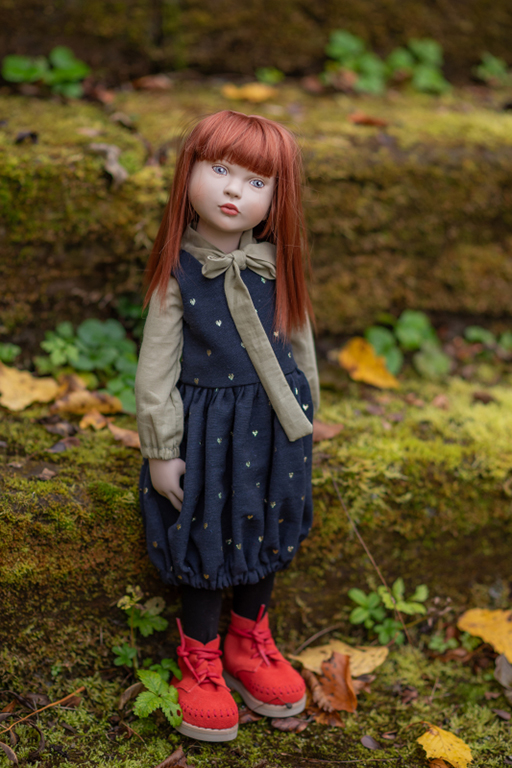 Beautiful Nova is 50cm tall. She has a high quality wig and is porcelain tone vinyl with grey hand painted eyes.